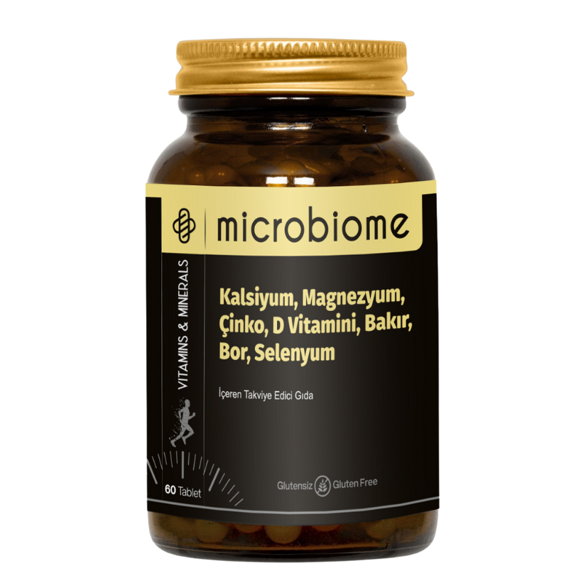 Microbiome Kalsiyum, Magnezyum, Çinko, D Vitamini, Bakır, Bor, Selenyum 60 Tablet