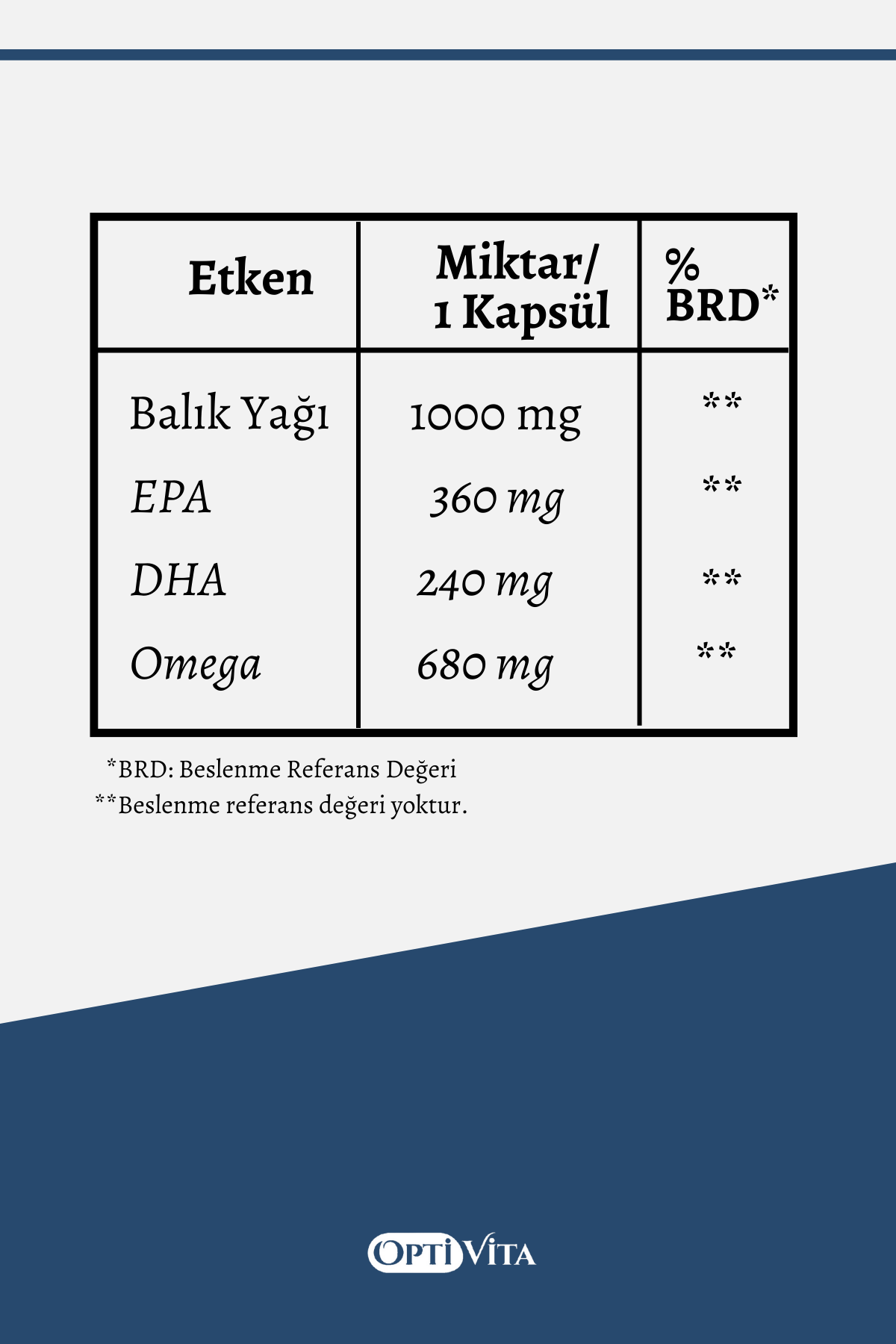 Optivita Omega 1000 mg Balık Yağı, EPA + DHA 30 Kapsül Softjel