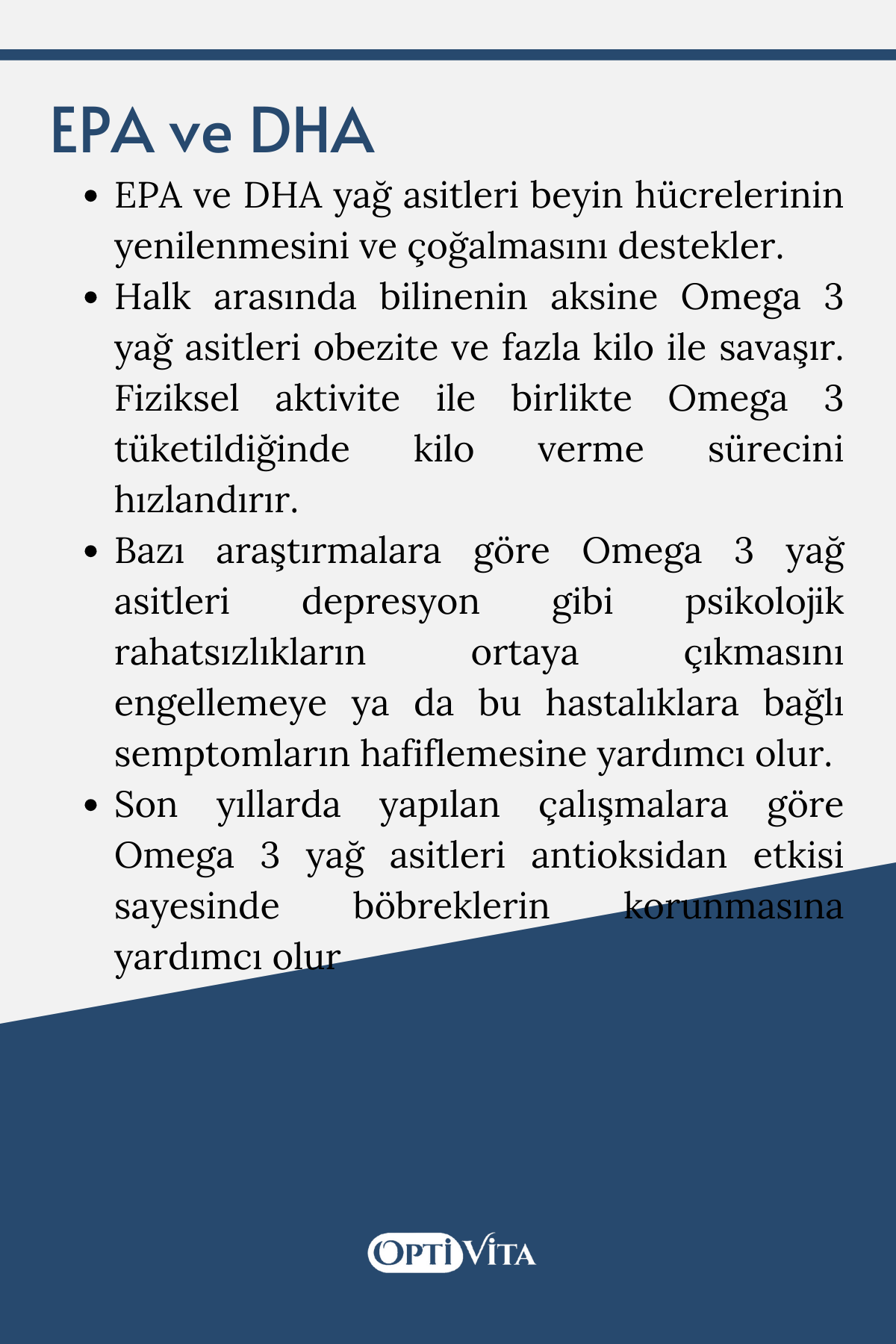 - EPA ve DHA yağ asitleri beyin hücrelerinin yenilenmesini ve çoğalmasını destekler.